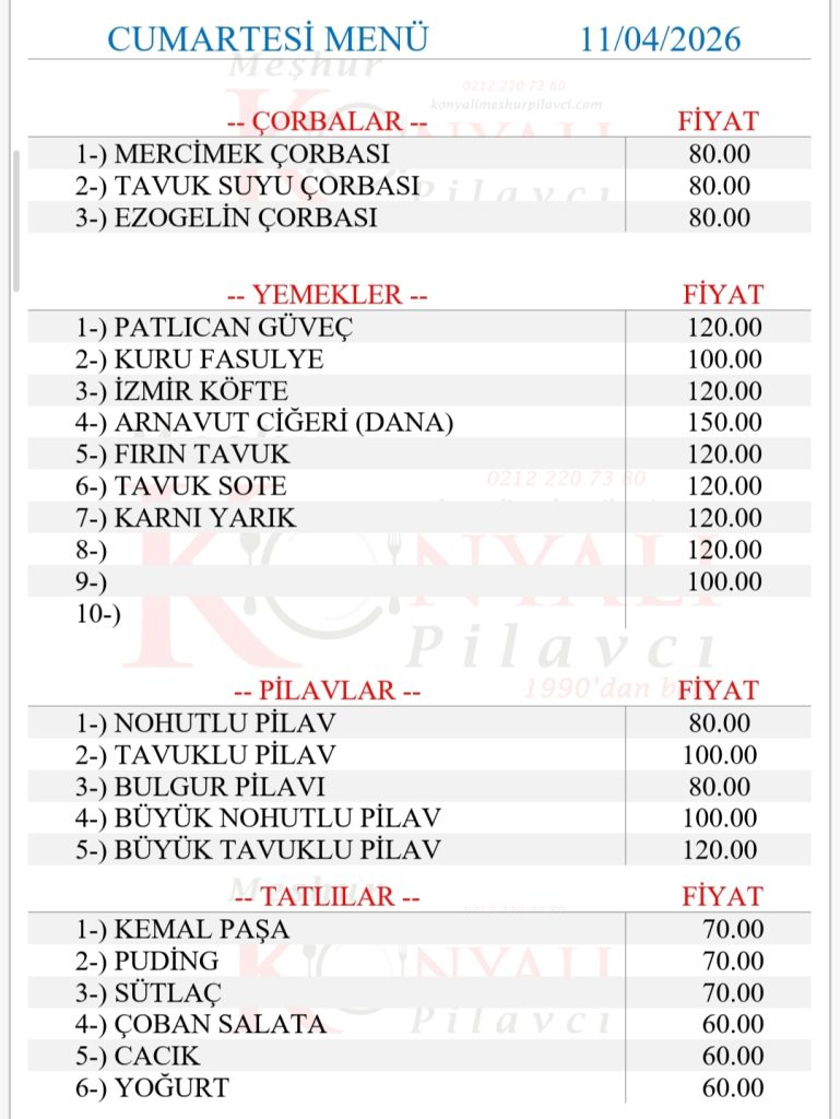 Cumartesi Menü Listesi
